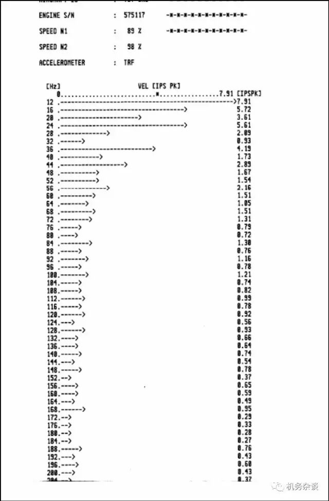 读“报”关键点: 1、定位:注意发动机序号 2、定数据源:是前振动传感器还是后振动传感器 3、定量:振动值最大是多少,以及对应的频率是多少