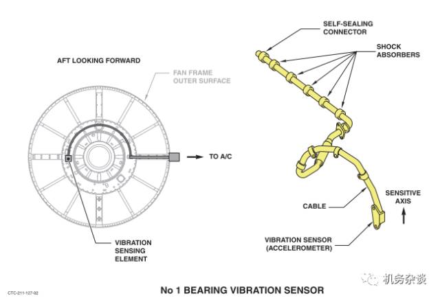 3、CFM56-5B有两个振动传感器,前振动传感器N1 bearing和后振动传感器TRF。