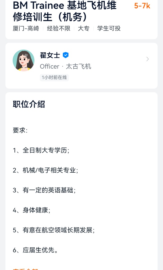 [职场交流] 厦门太古飞机,基地培训生只能线下面试,需要面试几轮 |