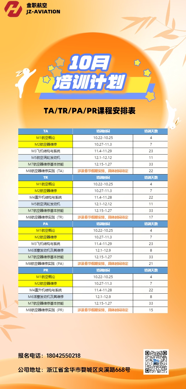 [基础培训] 【金职航空】10月TA/PA/TR/PR基础执照培训计划 |