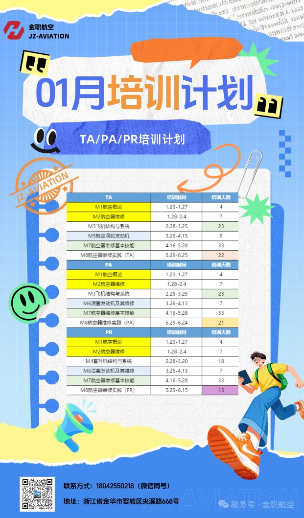 [基础培训] 【金职航空】1月TA/PA/PR培训计划 |