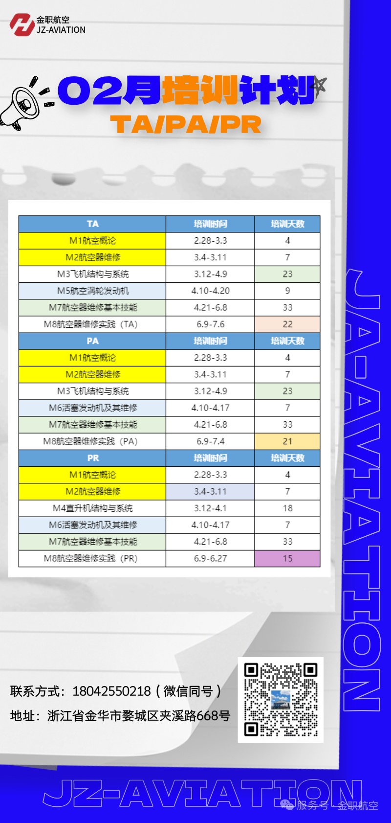 [基础培训] 【金职航空】2026年度培训计划/02月培训计划 |