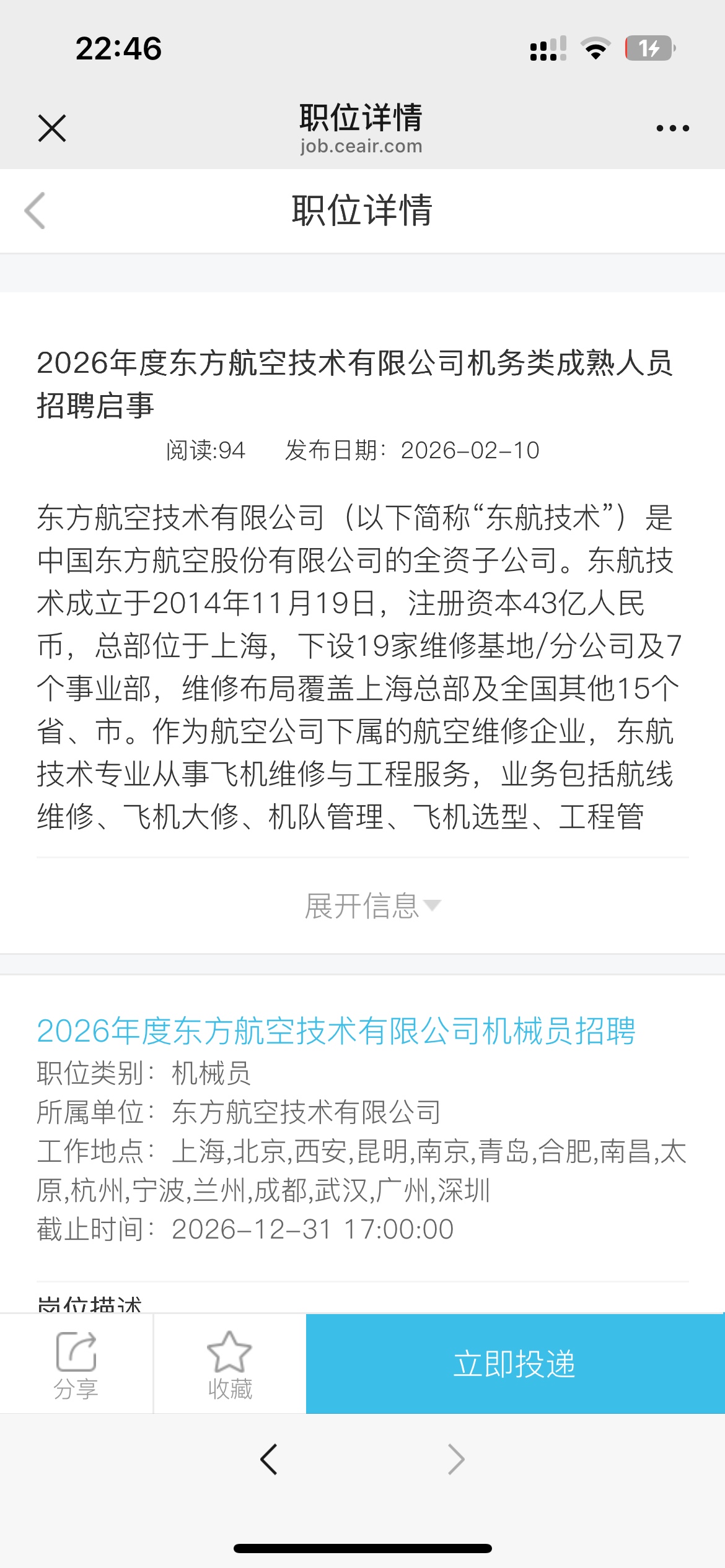 [职场交流] 东航2026年社招开始了 |