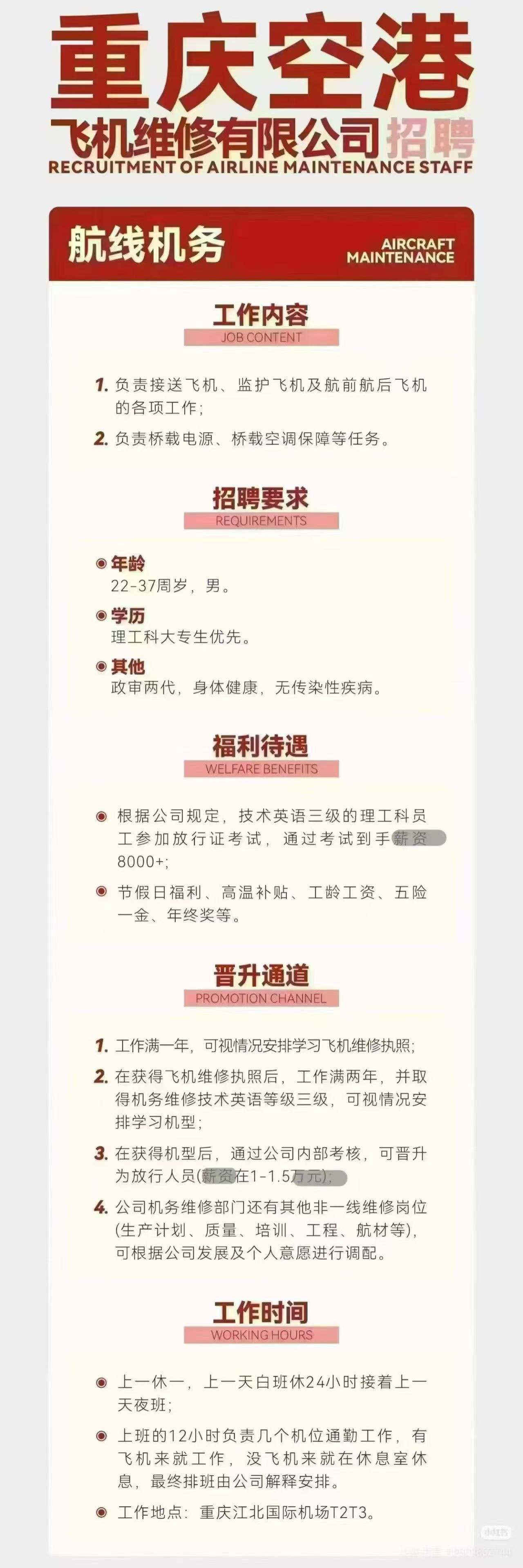 [招聘] 重庆江北机场招聘机务勤务员 |
