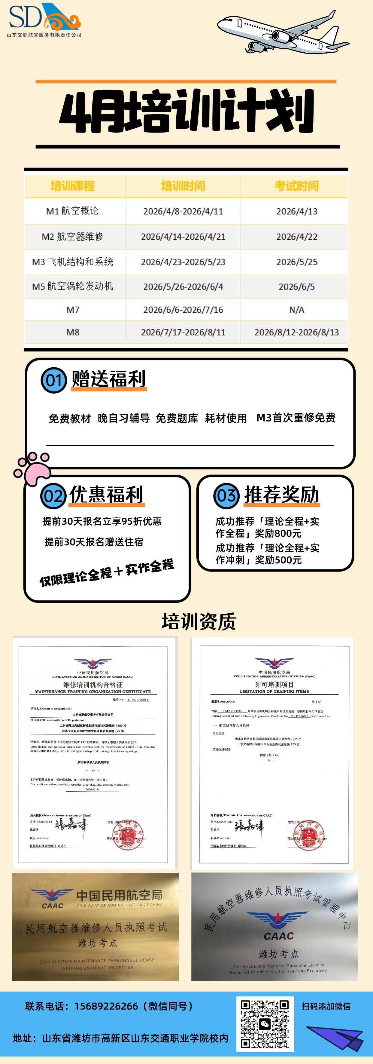 [基础培训] 山东交职航服4月份培训计划 |