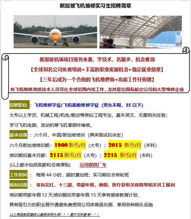 [招聘] 【招聘】新加坡机场招聘维修学徒 |